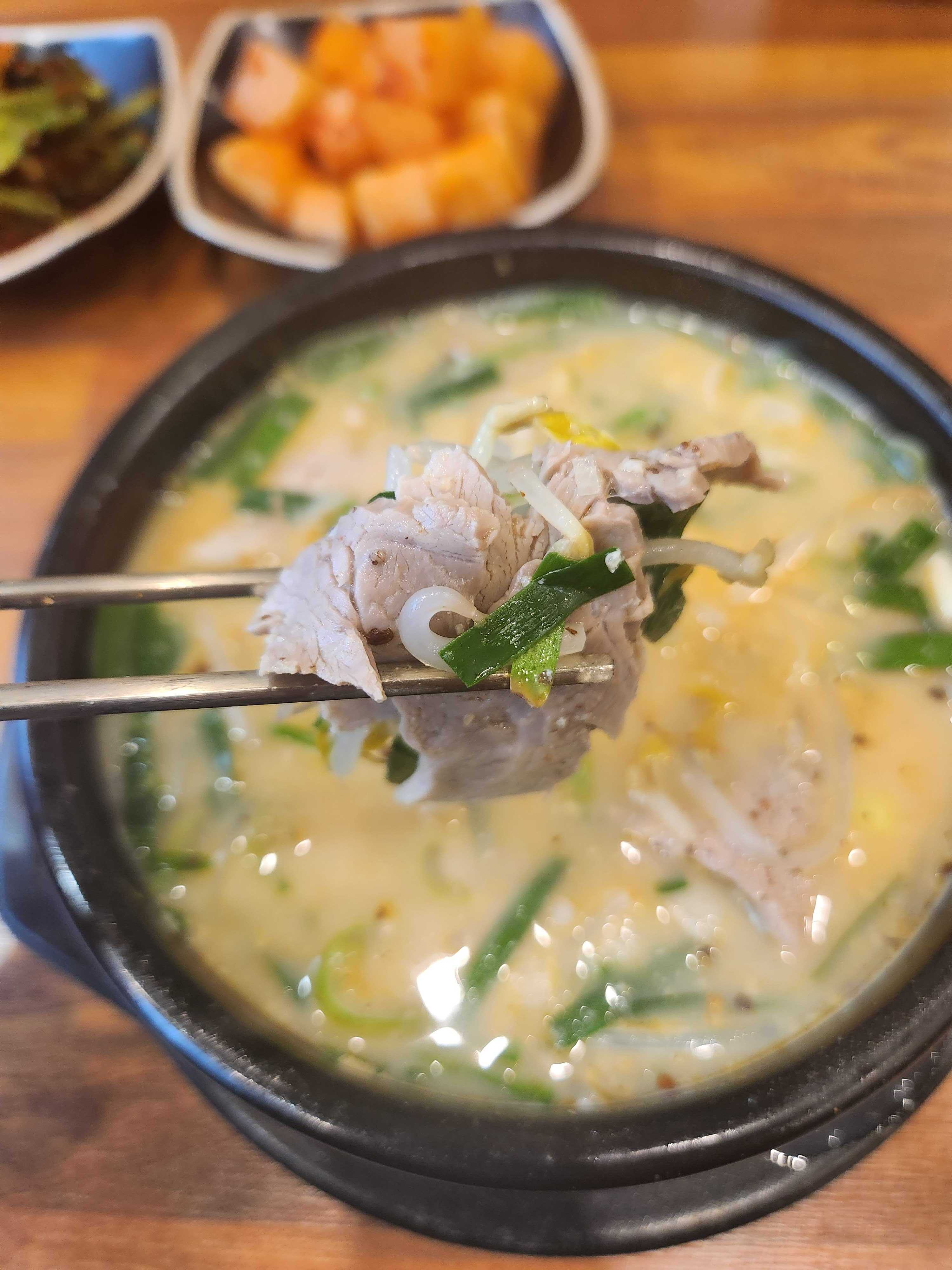우리는 돼지국밥을 시켰다.