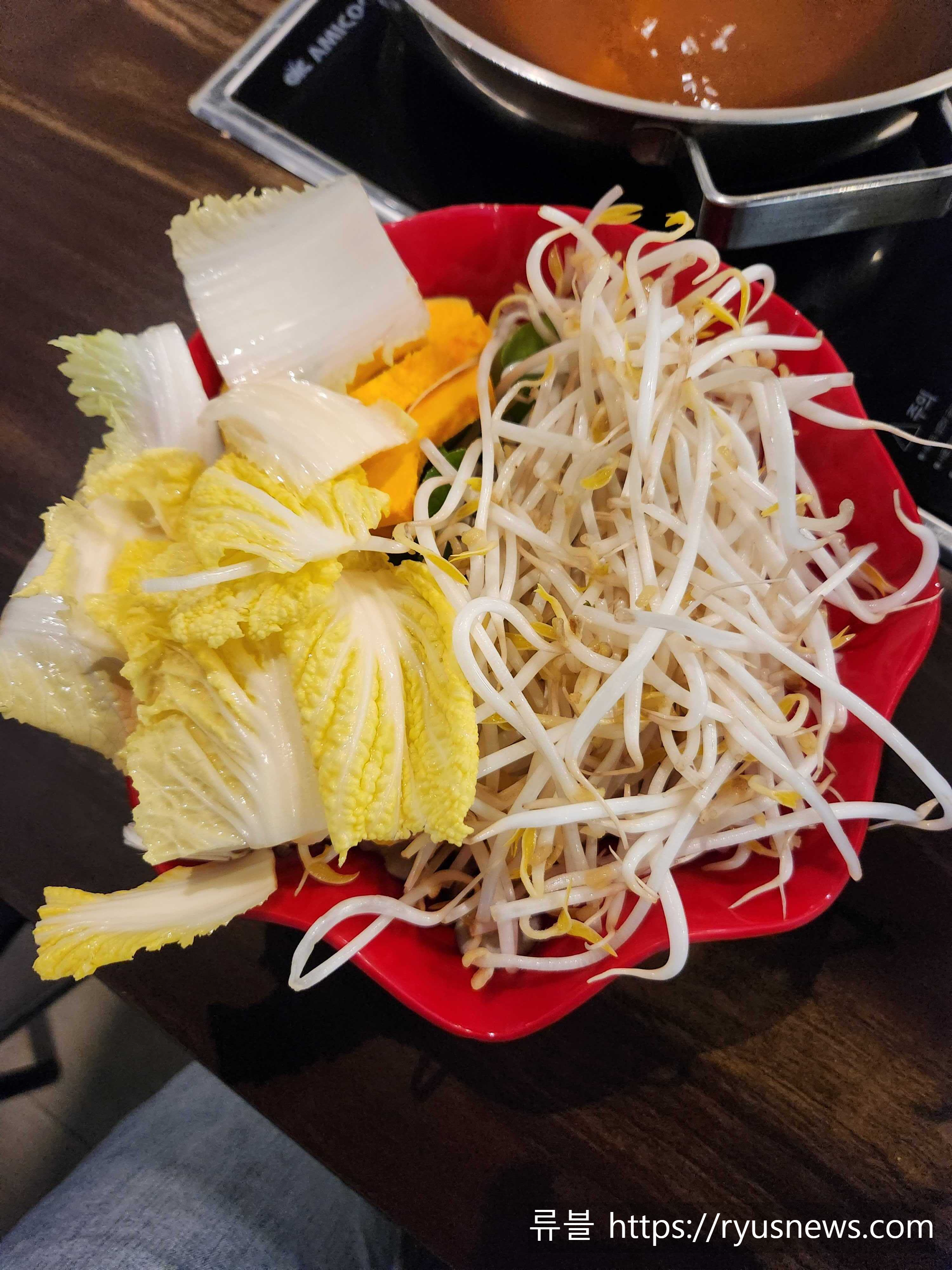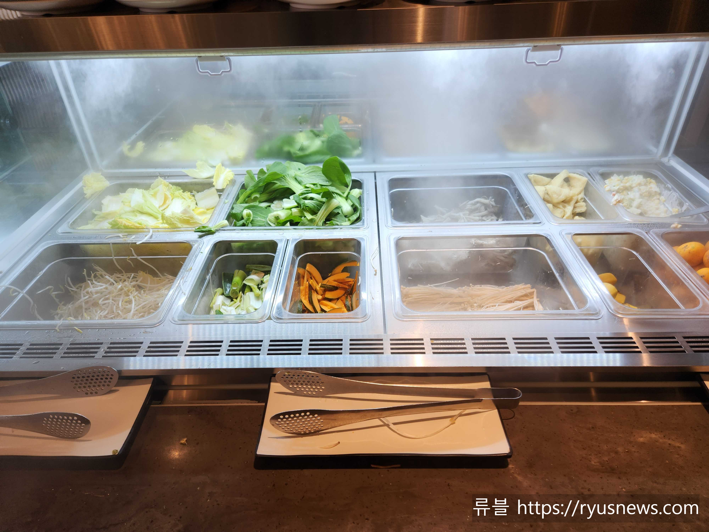 샤브 육수에 넣어 먹는 야채를 가져가는 곳인 것 같다.