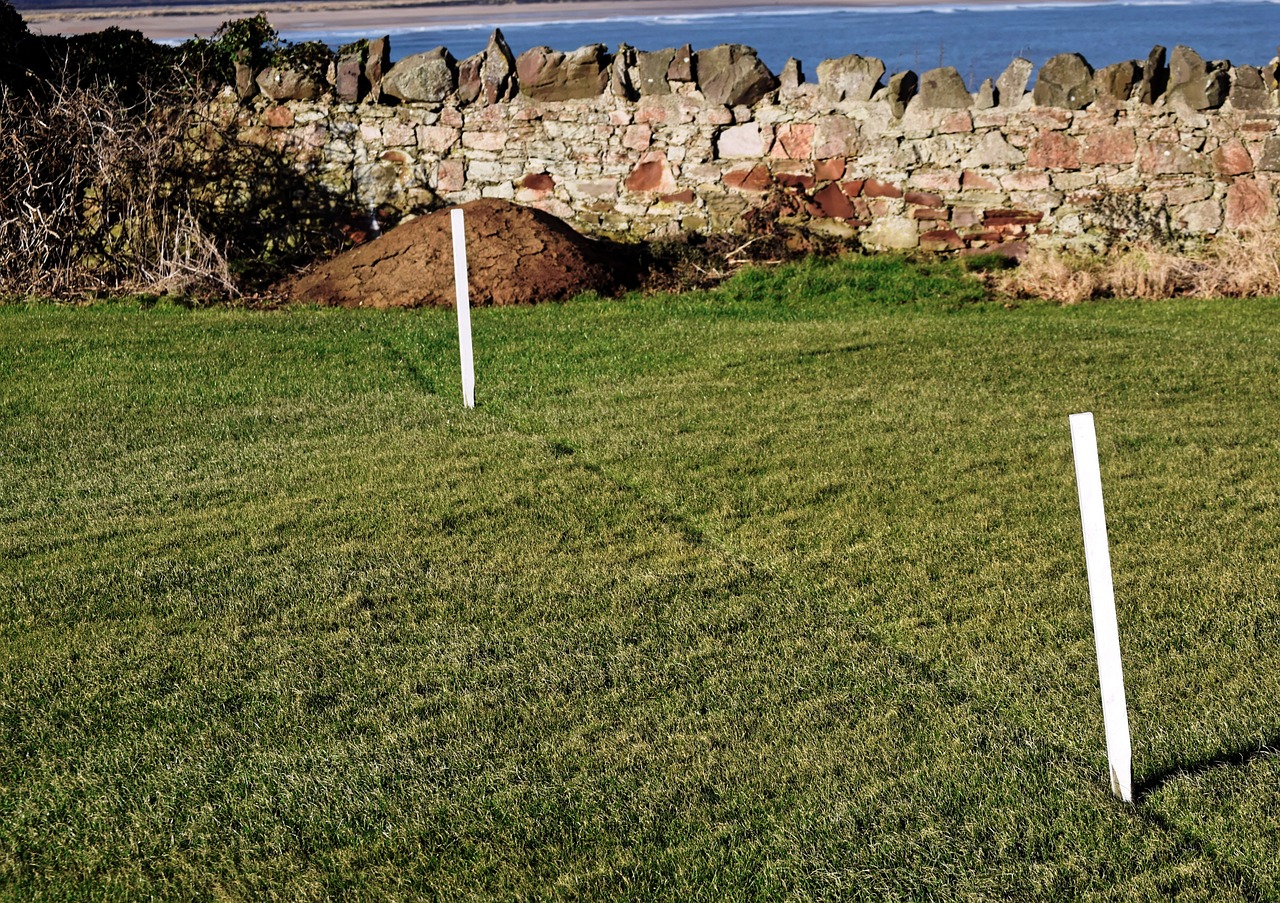 대부분의 골프 경기장에서는 화이트 라인이나 기타 경계선으로 OB 지역을 표시합니다.