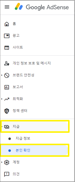 애드센스 홈페이지에서 아래사진의 메뉴를