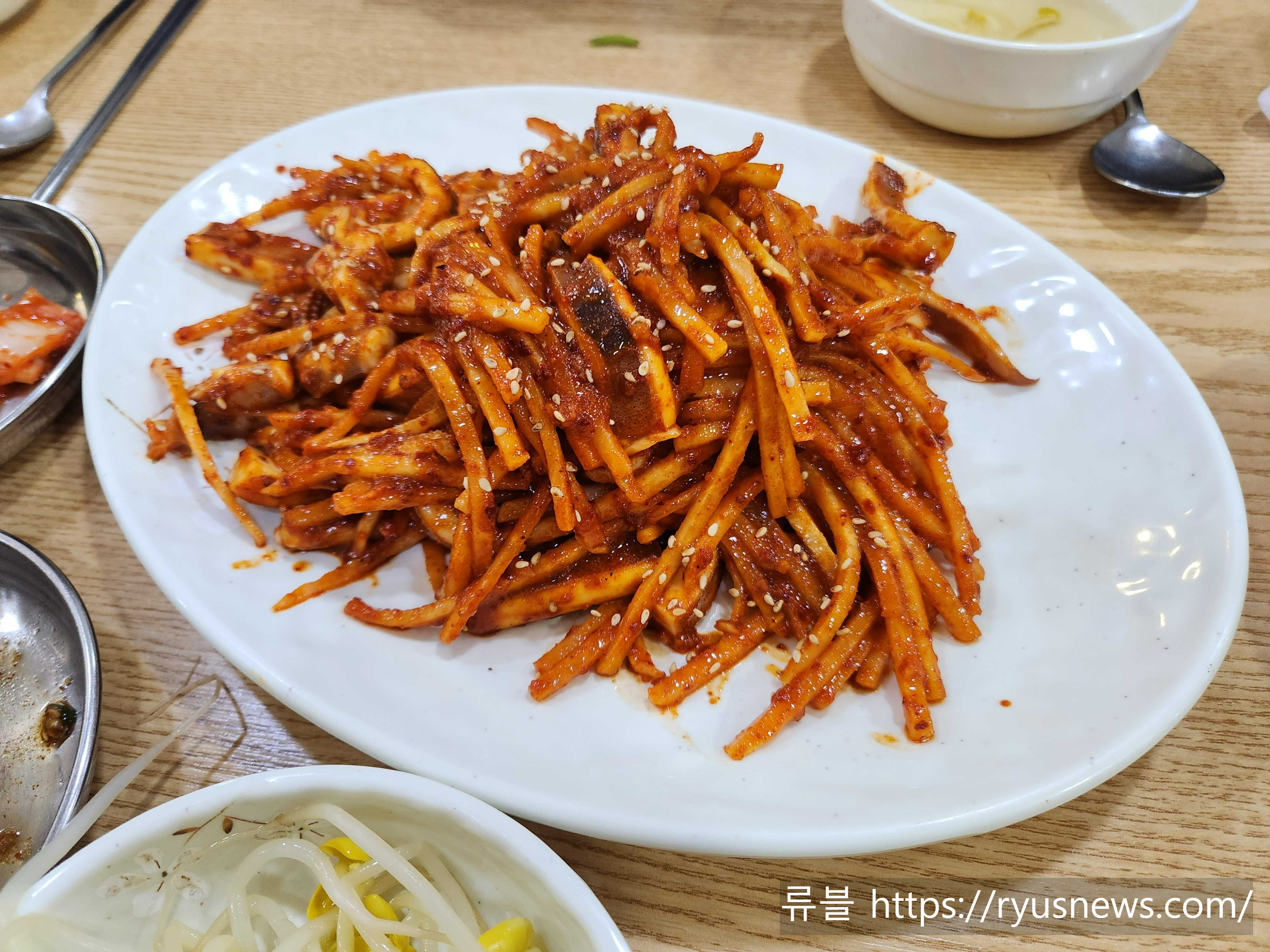 오징어보쌈은 조금 매콤한 양념으로 되어 있었고,