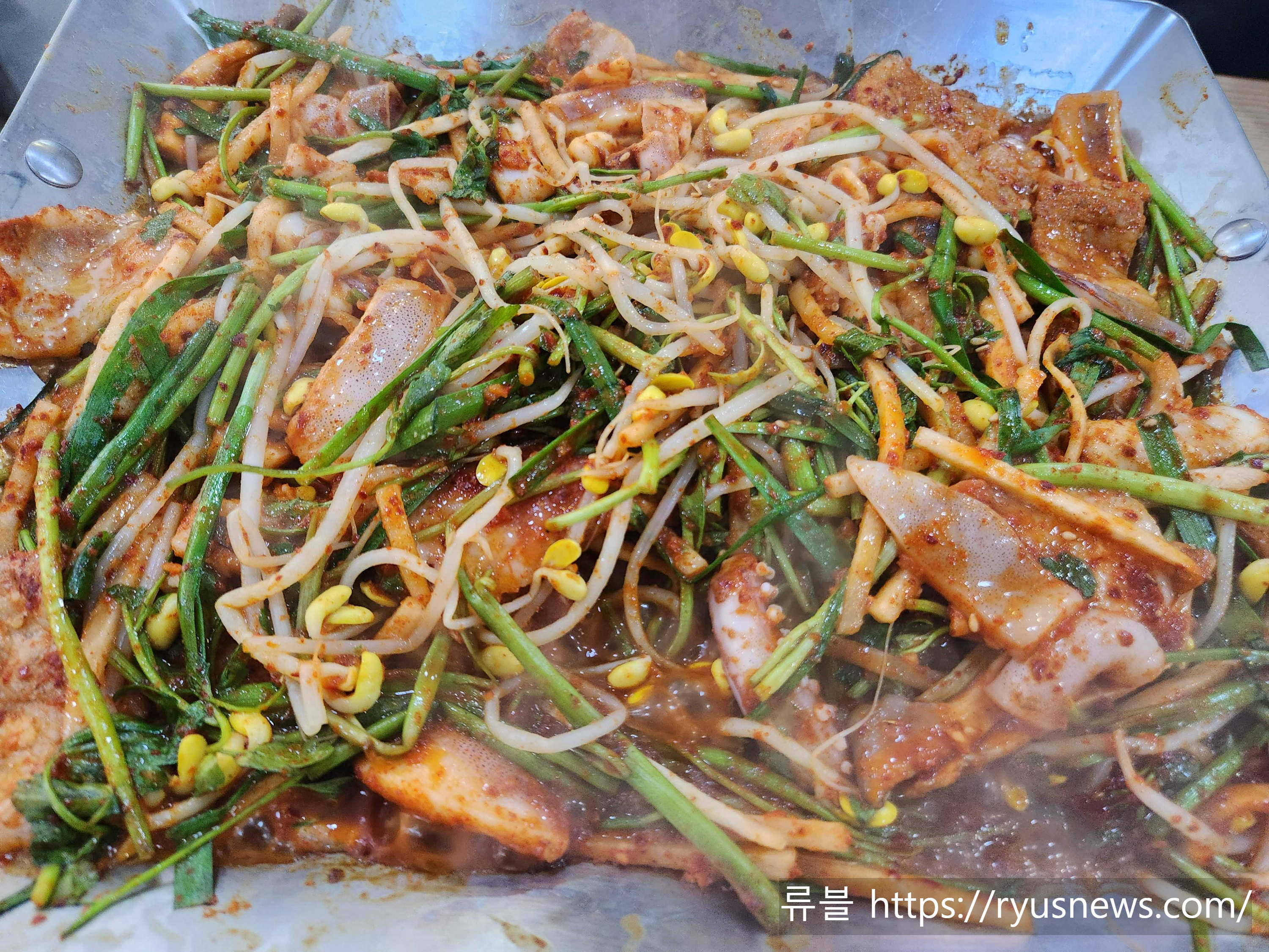 콩나물과 미나리가 같이 들어가 있는 오삼불고기였다.