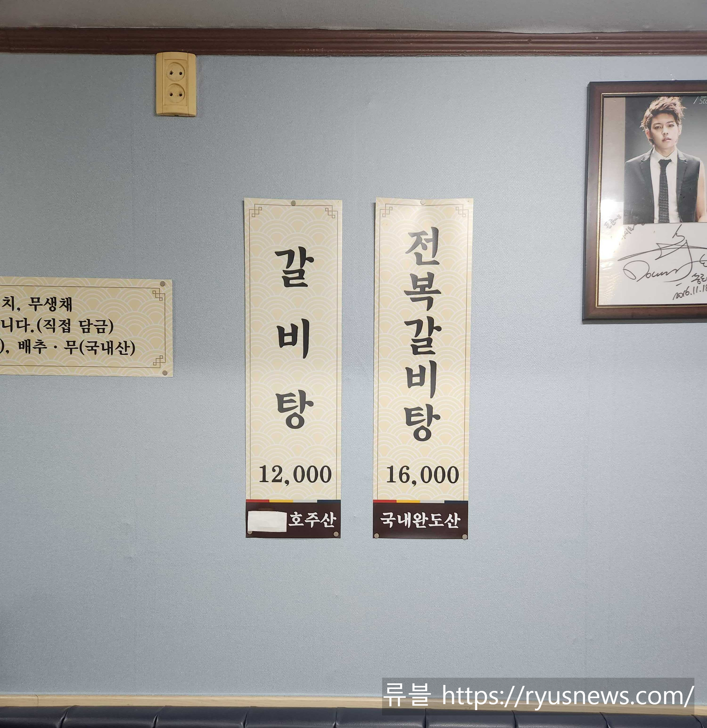 갈비탕과 전복갈비탕의 메뉴가 보인다.