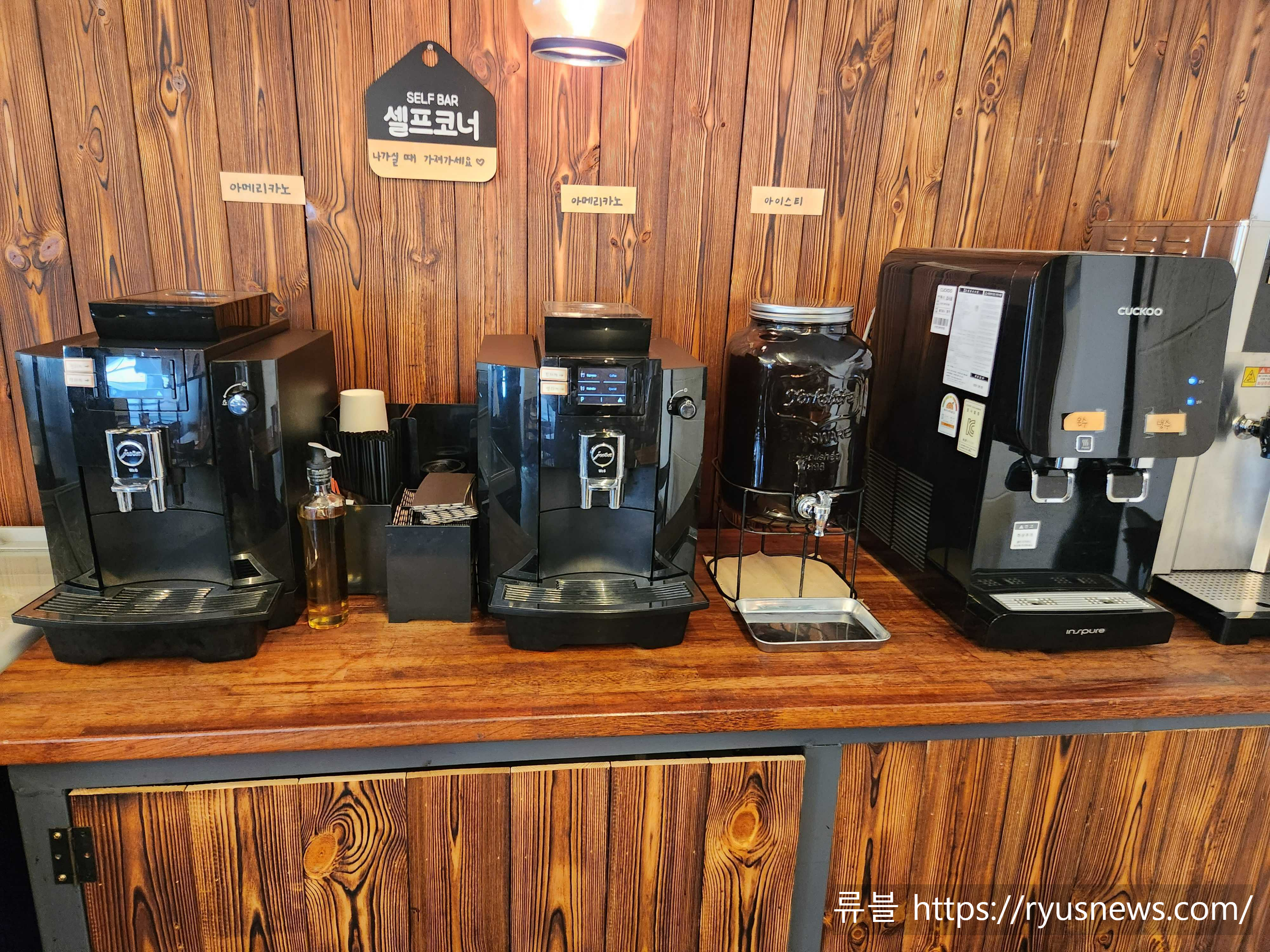 사진 바로 왼쪽 편에 얼음컵 냉장고도 있어서 테이크아웃 해가기 좋다.