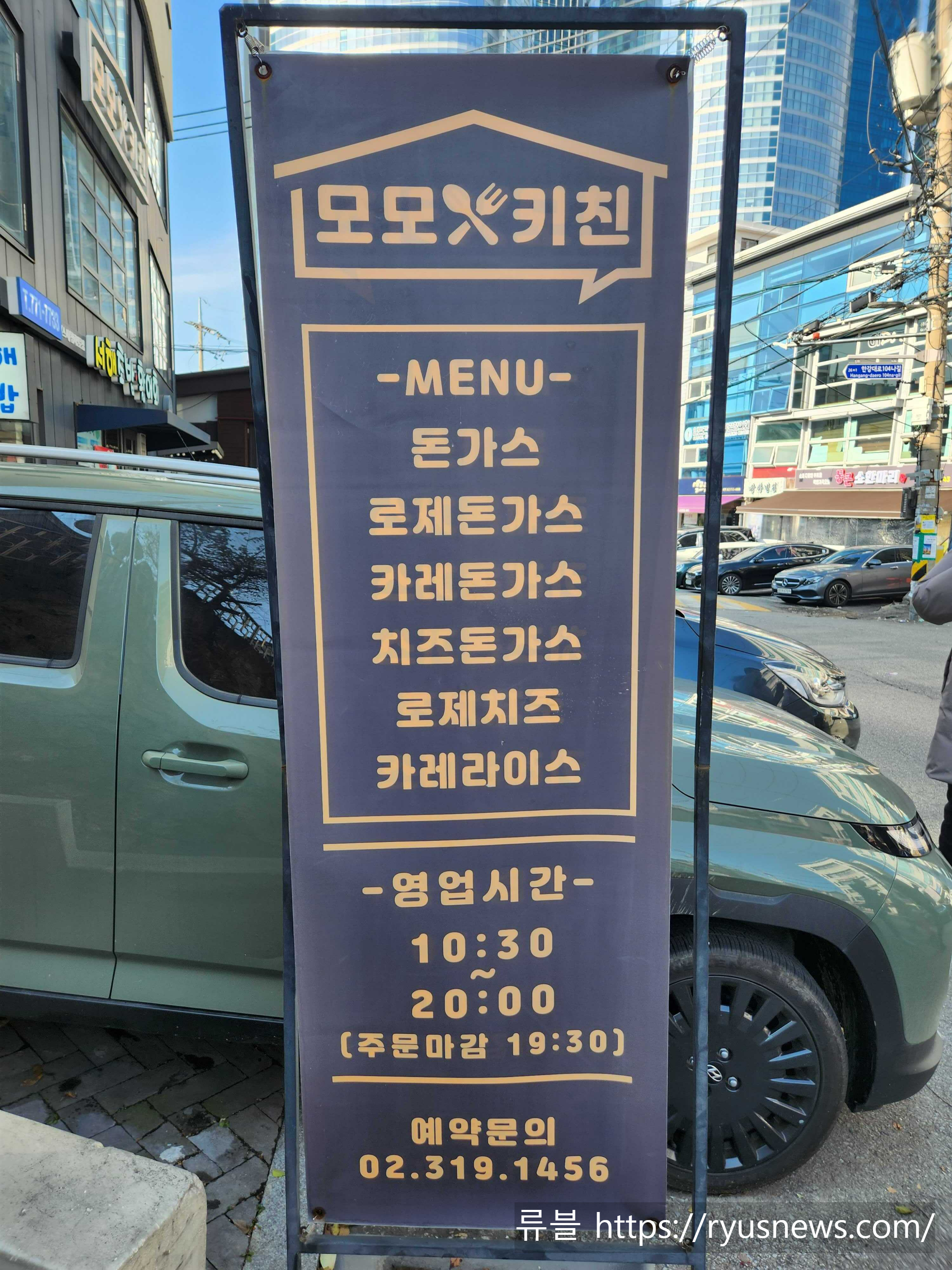 아기자기 귀여운 느낌을 주는 모모키친 간판이다.