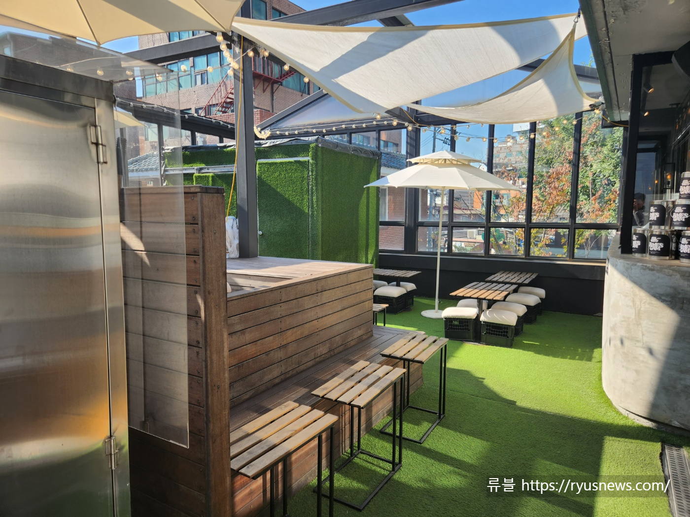 올라오자마자 너무 이쁘게 꾸며진 외부 테이블.