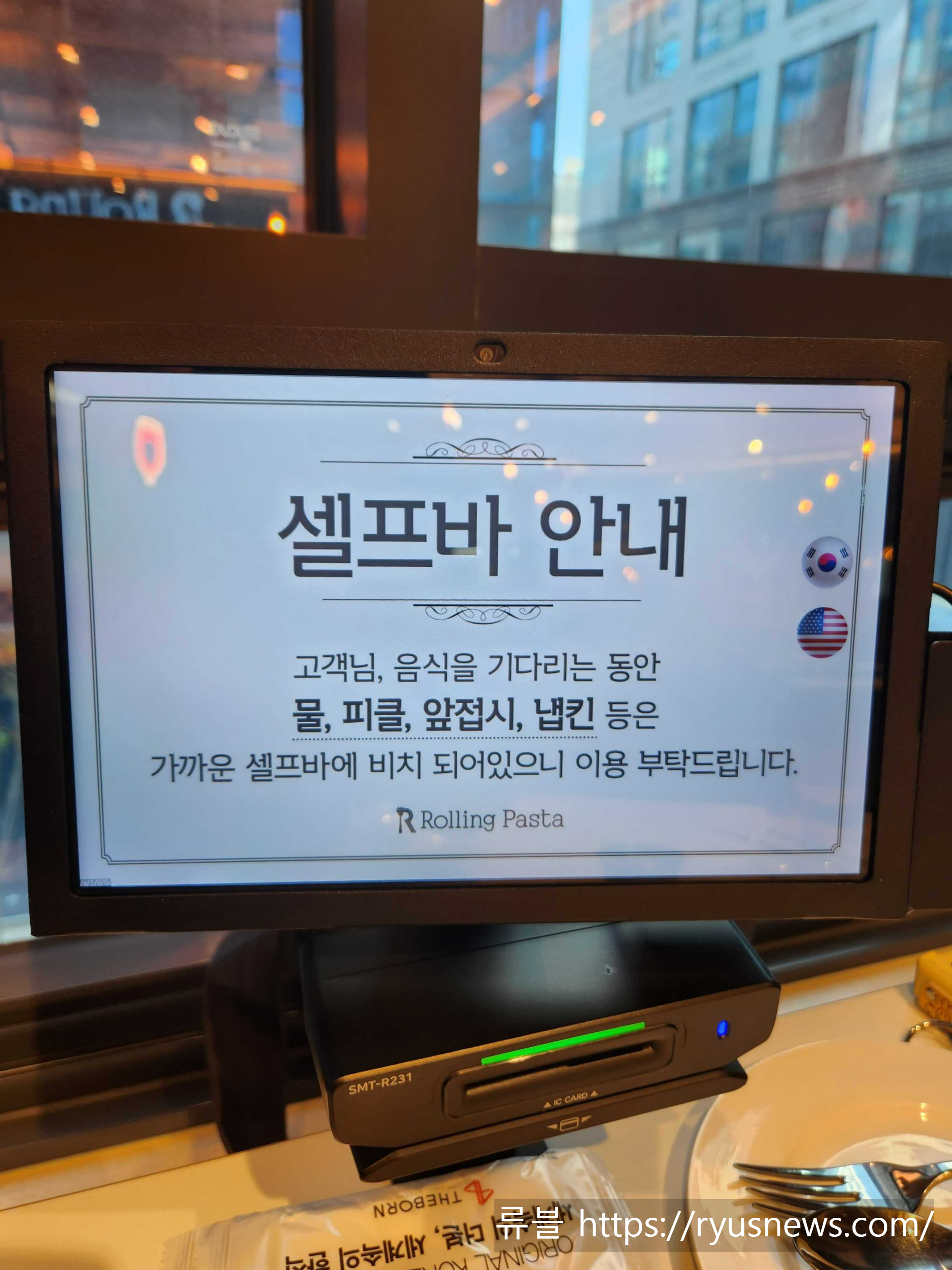 안내가 담긴 주문 태블릿과 셀프바도 깔끔했다.