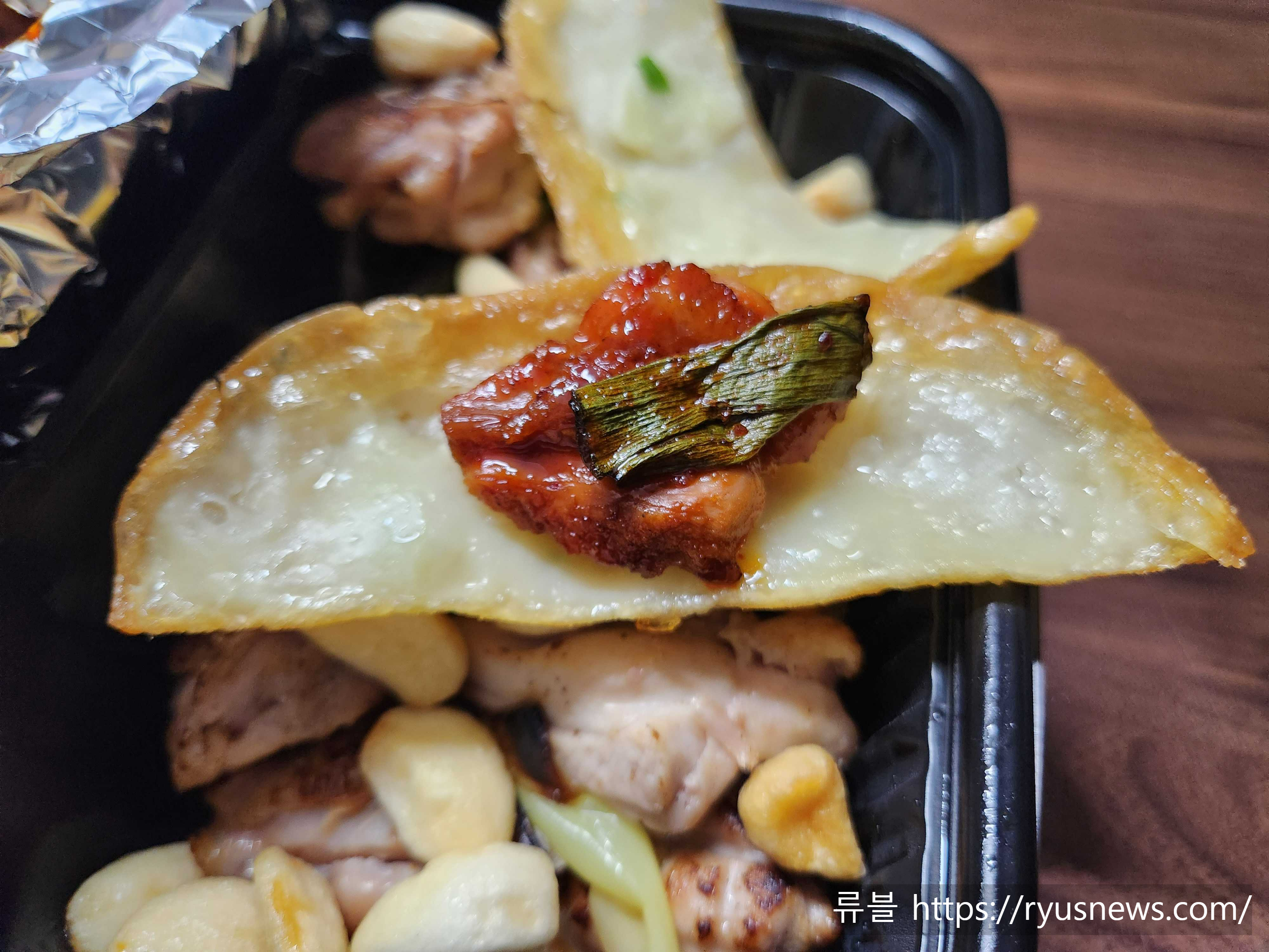 오른쪽의 튀김은 리뷰서비스로 같이 주문한 납작 만두 5개.