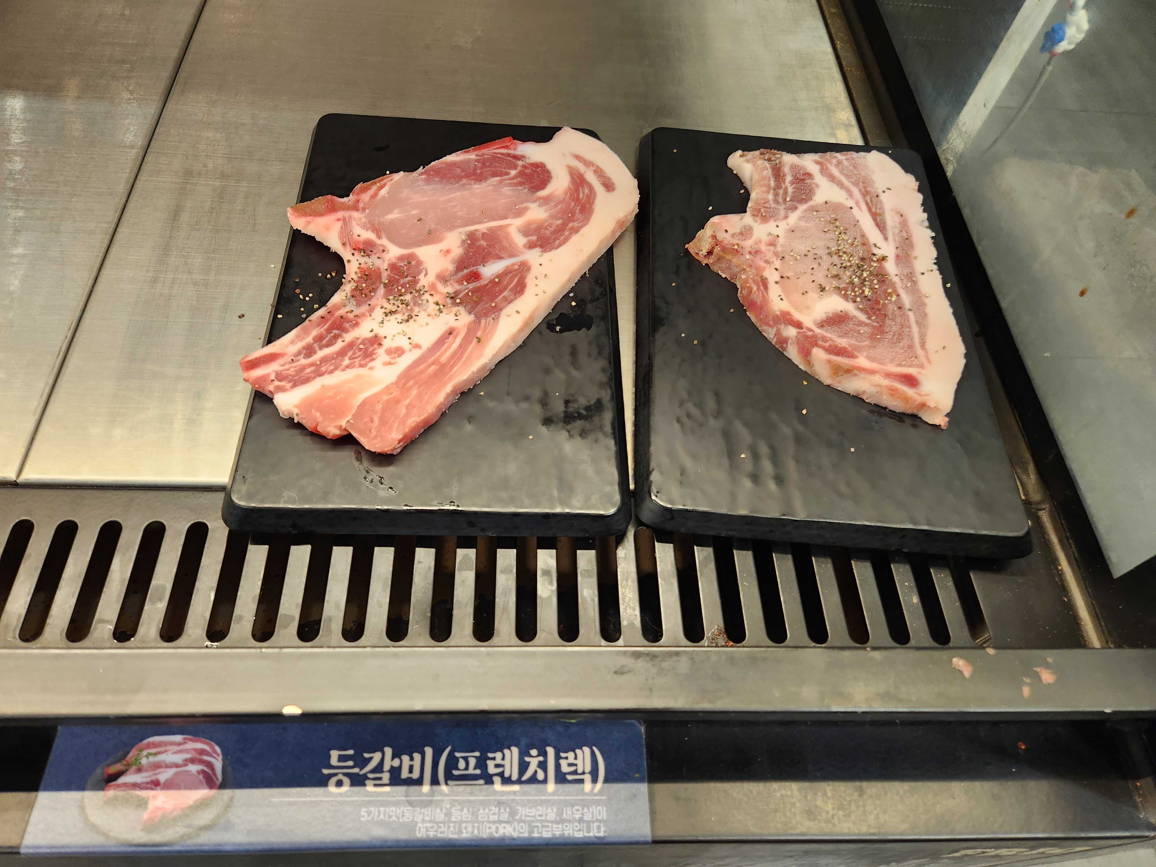 → 양념돼지갈비, 목살, 등갈비(프렌치렉), 통삼겹살, 돼지껍데기, 숯불닭갈비