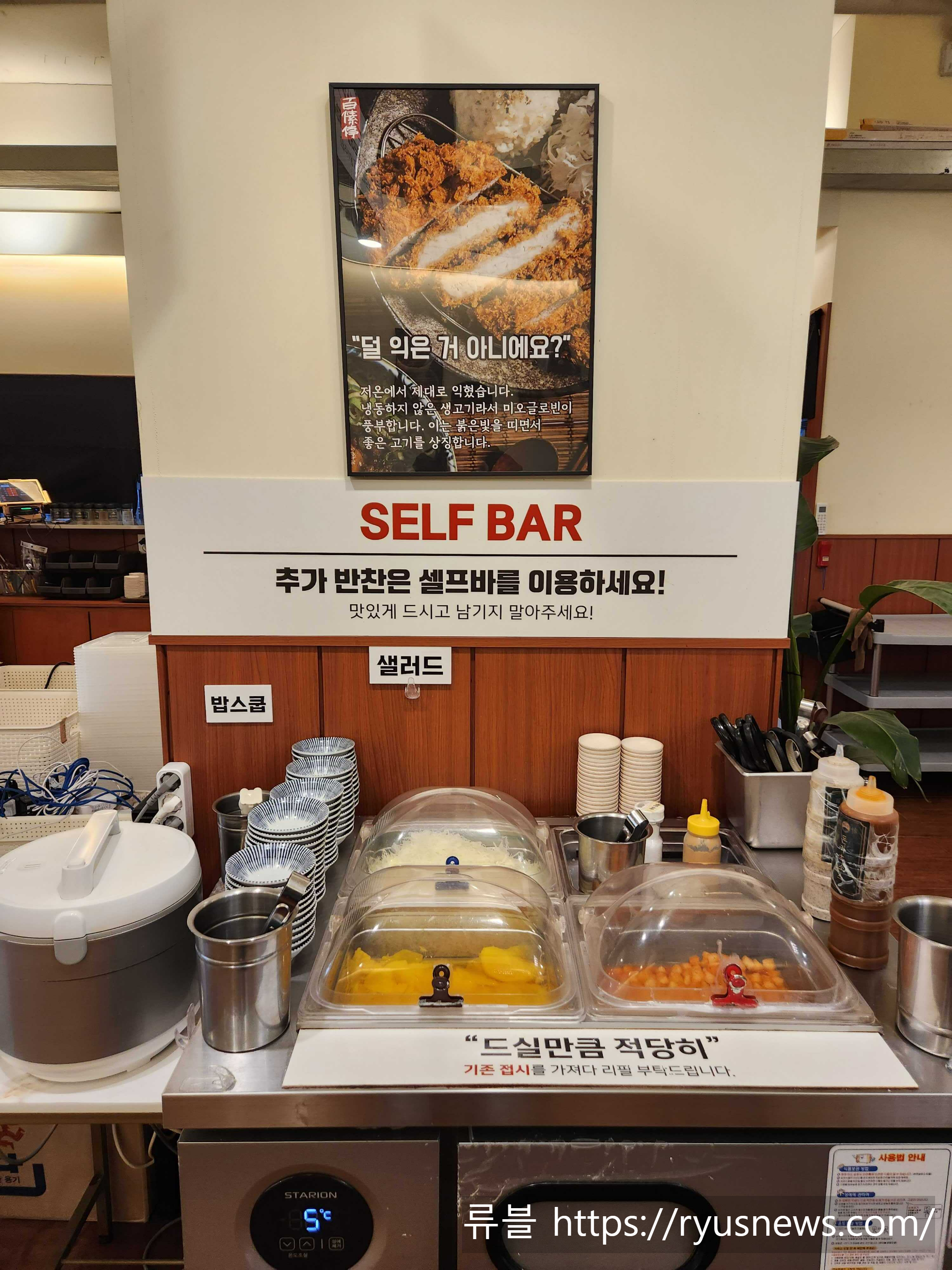 벽에 걸린 안내문구와 함께 같이 있던 셀프바도 한컷 찍고,