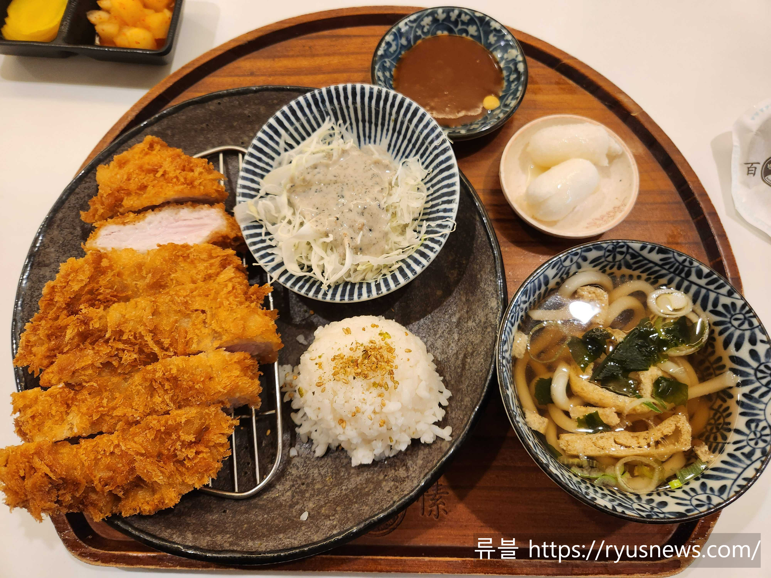 육즙을 머금고 있는 듯해 보이는 두툼한 돈카츠도 한 컷.